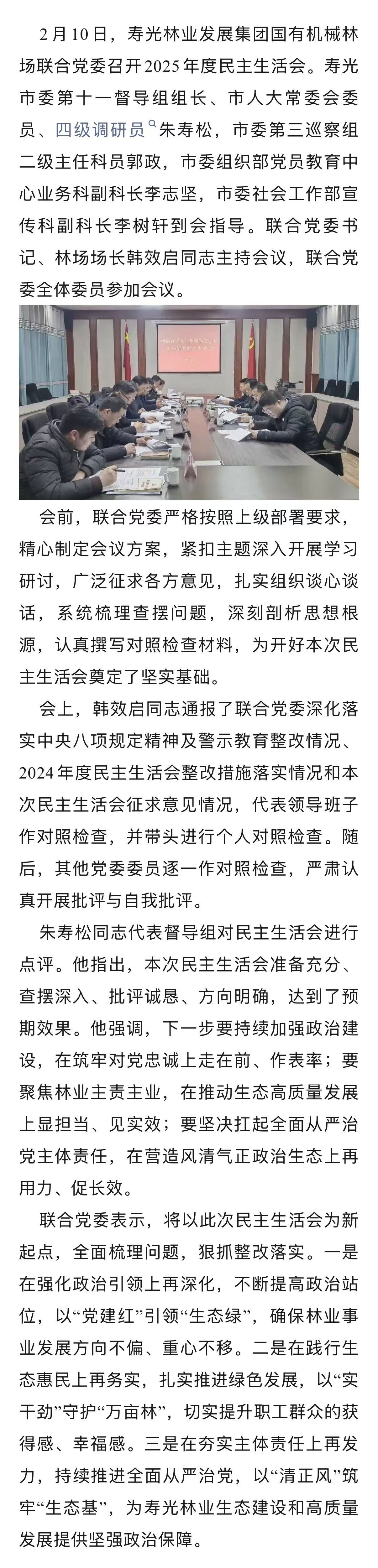 寿光林业发展集团国有机械林场联合党委召开2025年度民主生活会